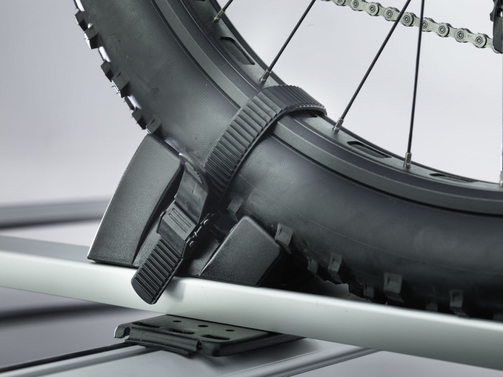 A hordozó két menetirányban használható, így több kerék rakható a tetőre. A felnik rögzítéséhez erős és kiváló minőségű, racsnis mechanizmussal ellátott műanyag hevedereket használunk.