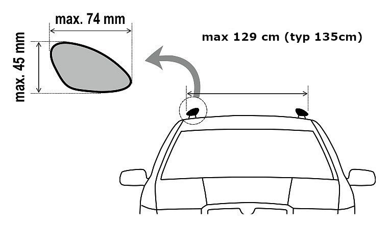 | Maximális hosszirányú járműtartó keresztmetszet: | | 45 x 74mm |