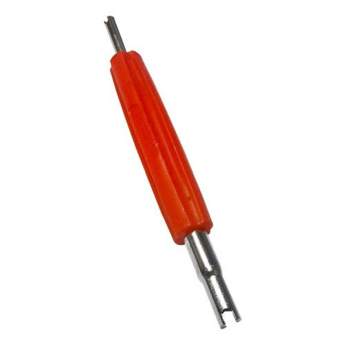 Dupla végű szeleptűcsavarhúzó szerszám, gyors és precíz szeleptű kivételhez és visszahelyezéshez.