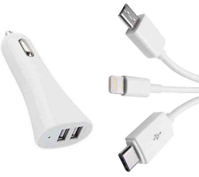 2-es USB töltő M-USB/Apple/Type-C 12V 2.1A AE-WF132-1