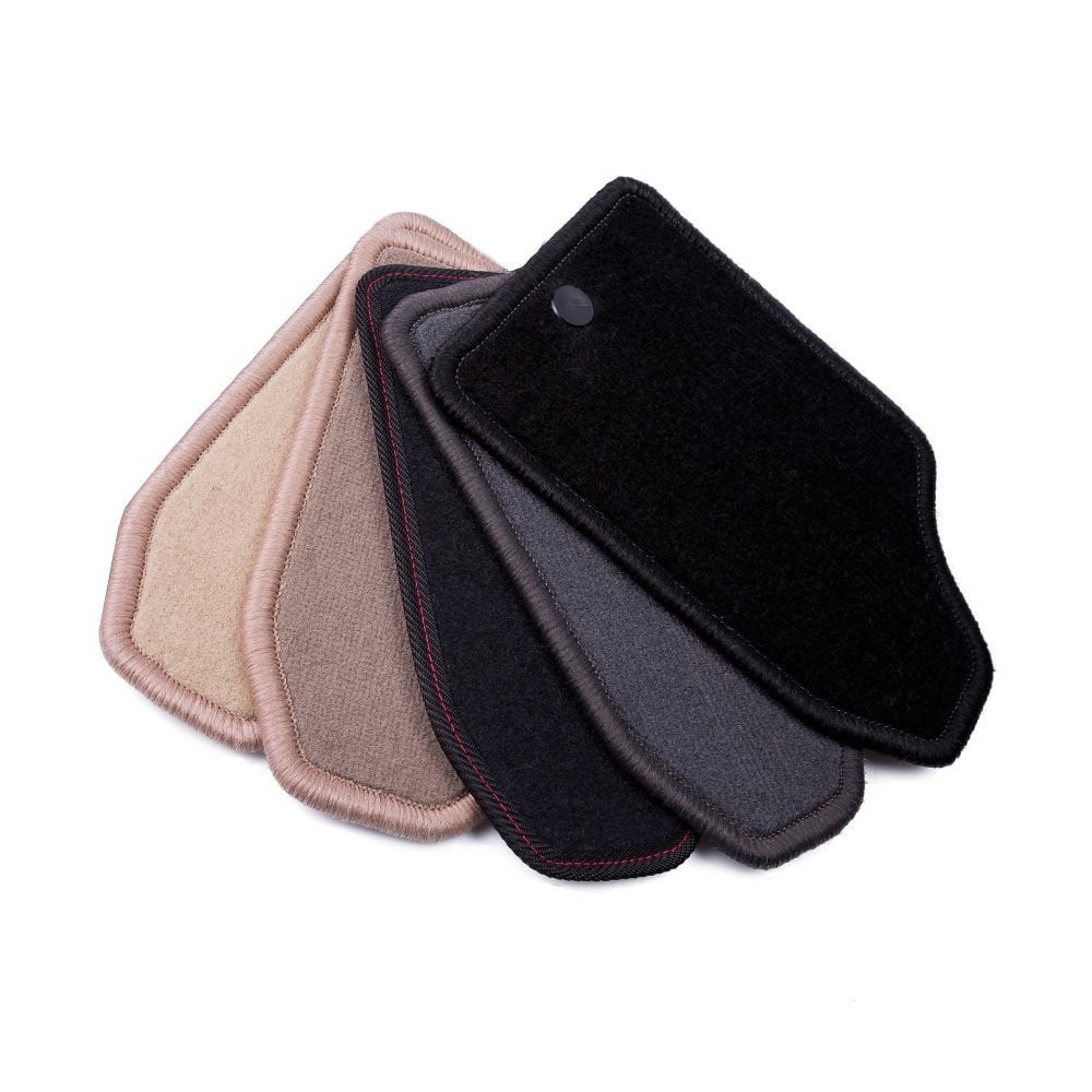 A szőnyegek peremét különleges chemlon szövéses varrással láttuk el, akár 20 választható színnel, így minden belső tér harmonikus és egyedi megjelenést kaphat. A vezető lába alatti, megerősített rész is azonos varrással készül, ezzel biztosítva az esztétikus összhangot.