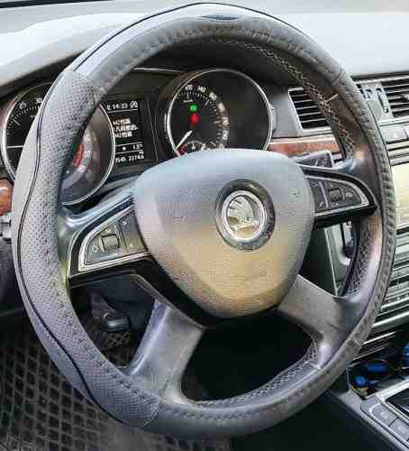 Ez a 38 cm átmérőjű univerzális kormányvédő fekete színben, karbon mintázattal készült. Javítja a vezetési komfortot, megakadályozza a kéz csúszását, és védi a kormányt a kopástól.