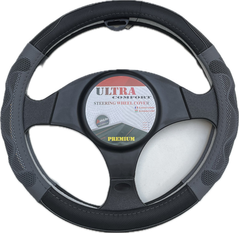 Valódi bőr kormányvédő 38cm fekete/szürke (5002GRAY) 00948 autolife