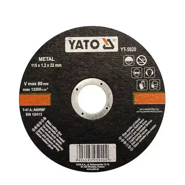 YT-5920 jelű vágókorong sarokcsiszolóhoz, 115 mm átmérővel, 22 mm furatmérettel és 1,2 mm vastagsággal. Vékony kivitelének köszönhetően gyors, pontos és tiszta vágást biztosít.