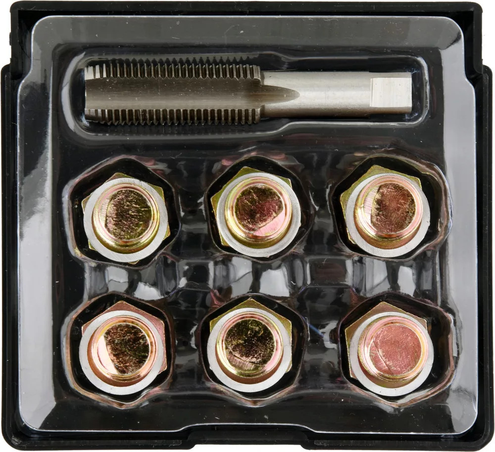 M15x1,5 méretű menethez való olajteknő-csavar javító készlet, praktikus tárolóban.
