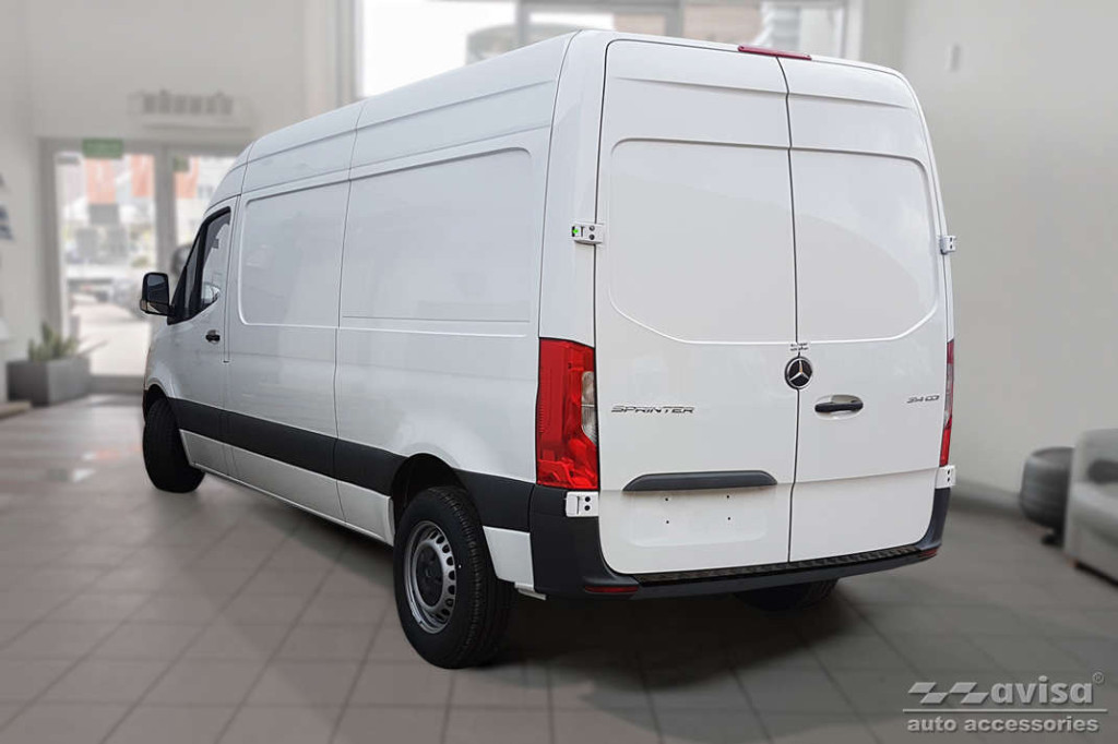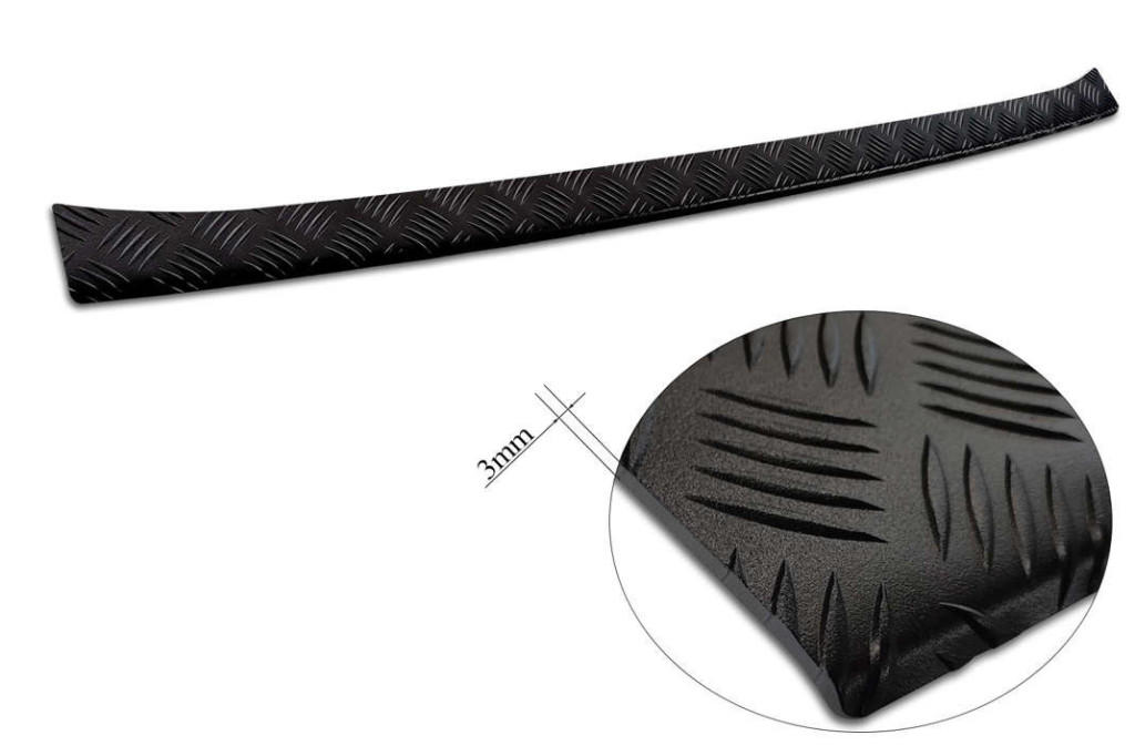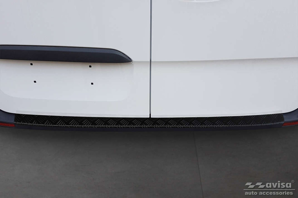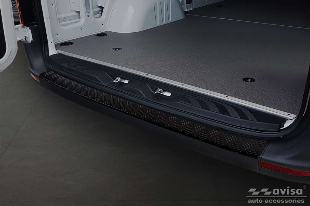 Mercedes|Sprinter|2018-|3 mm vastag barázdált alumínium védőcsík, struktúrált matt fekete bevonattal. Védelem a lökhárító és a csomagtér peremének karcolódása ellen.
