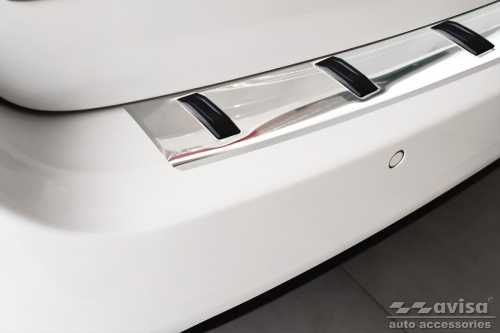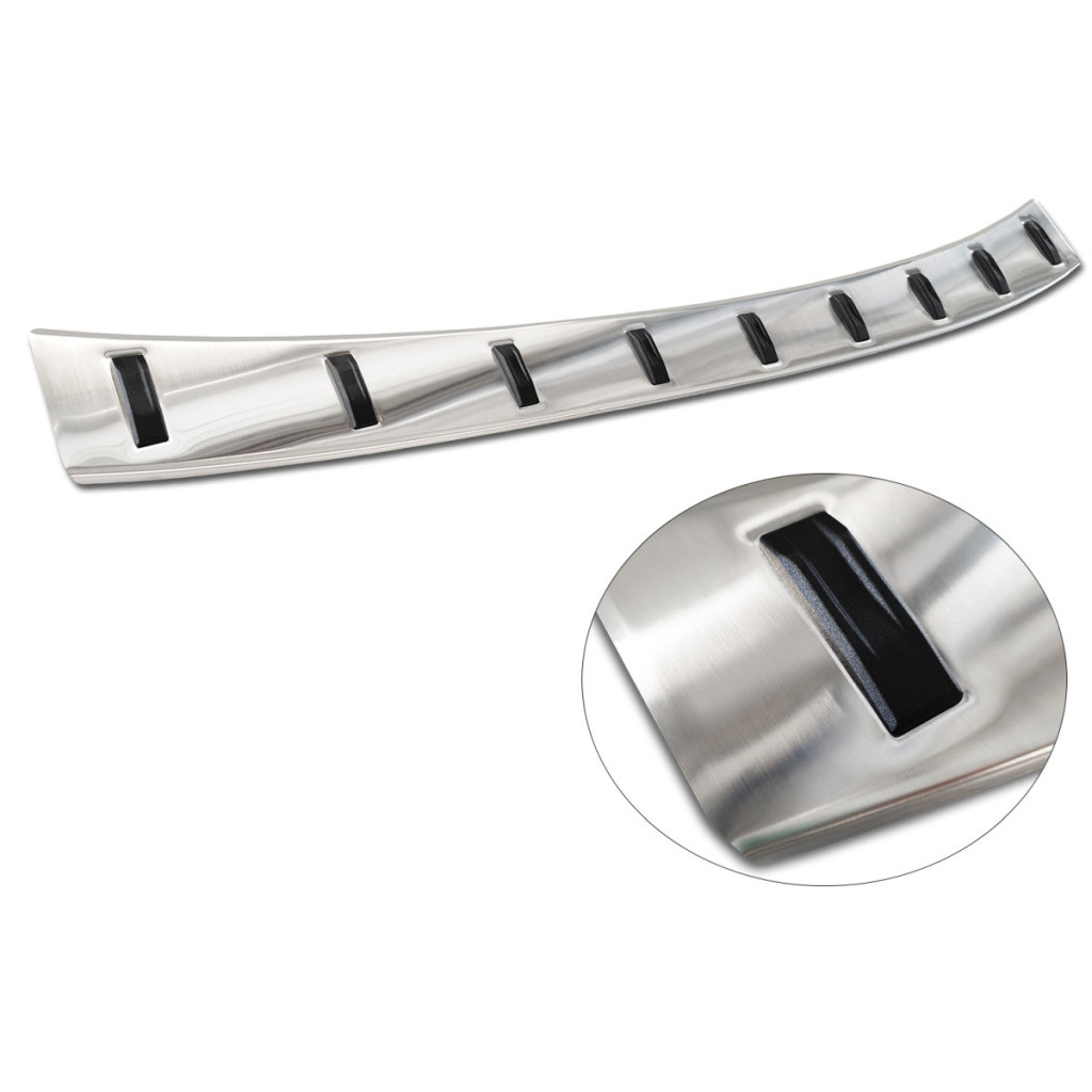 Erősített Hátsó lökhárítóra készült védőcsík rozsdamentes acélból. Megbízhatóan védi a lökhárítót karcolásoktól a rakodás és kipakolás során a csomagtérből.