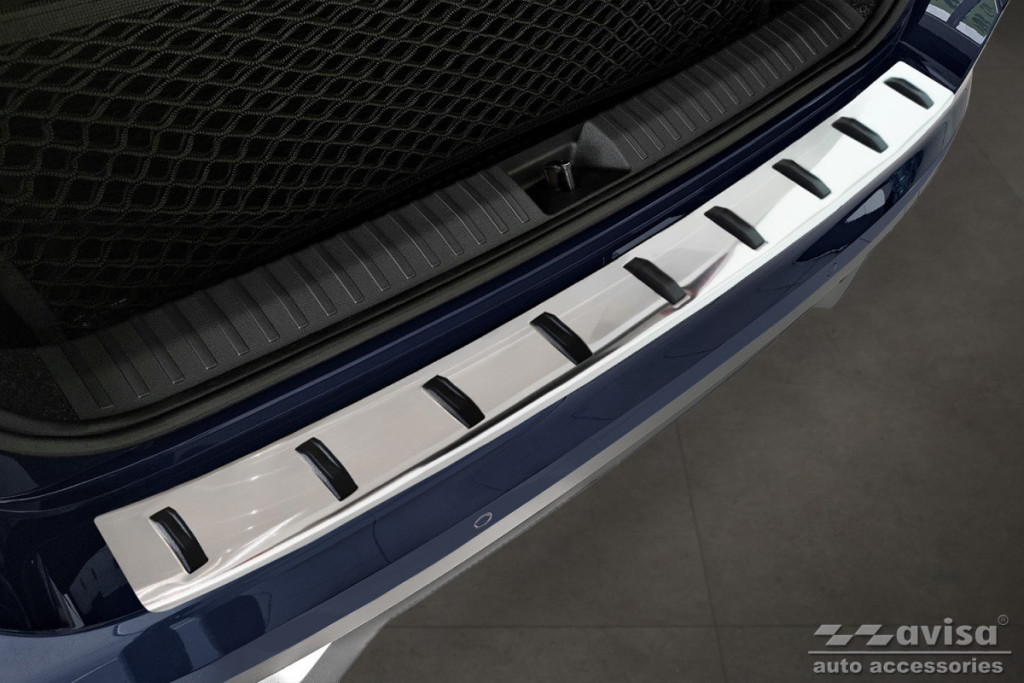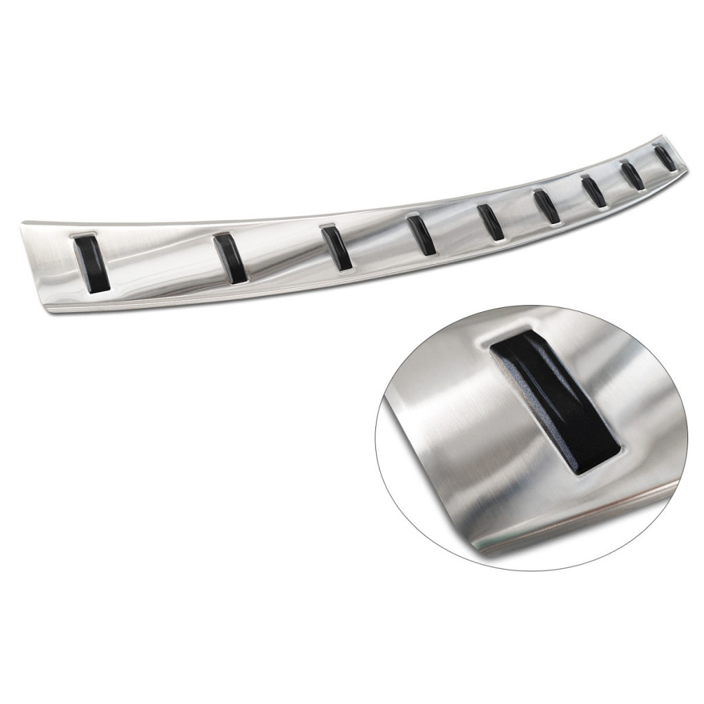 Erősített Hátsó lökhárítóra készült védőcsík rozsdamentes acélból. Megbízhatóan védi a lökhárítót karcolásoktól a rakodás és kipakolás során a csomagtérből.