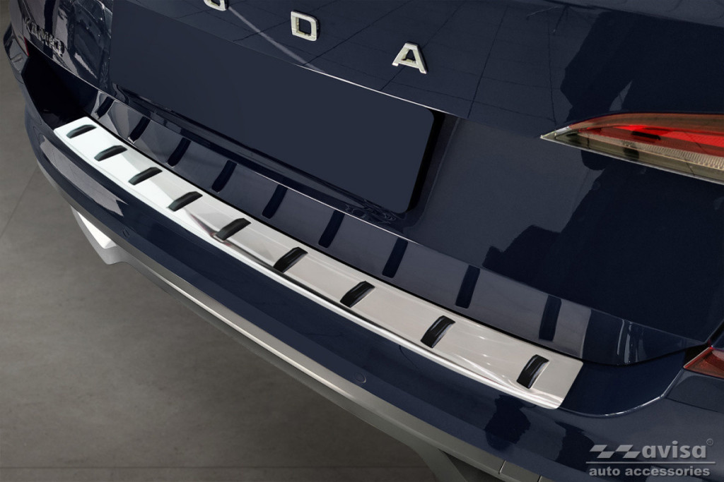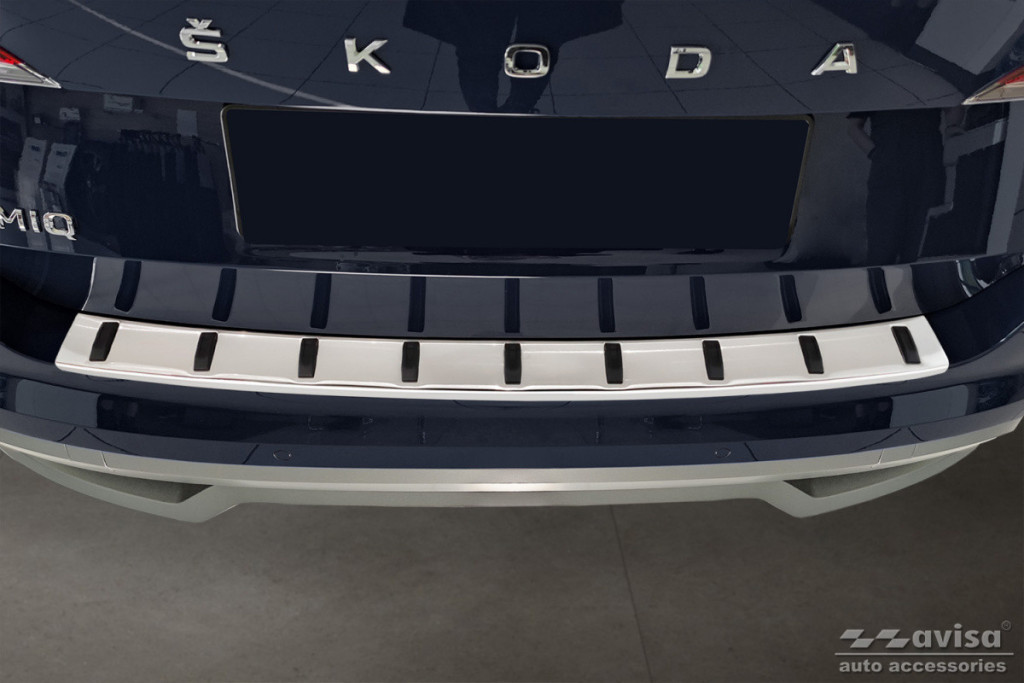 Škoda|Kamiq|2019-|0,8 mm vastag rozsdamentes acél védőcsík műanyag bordázattal. Védelem a lökhárító és a csomagtér peremének karcolódása ellen.