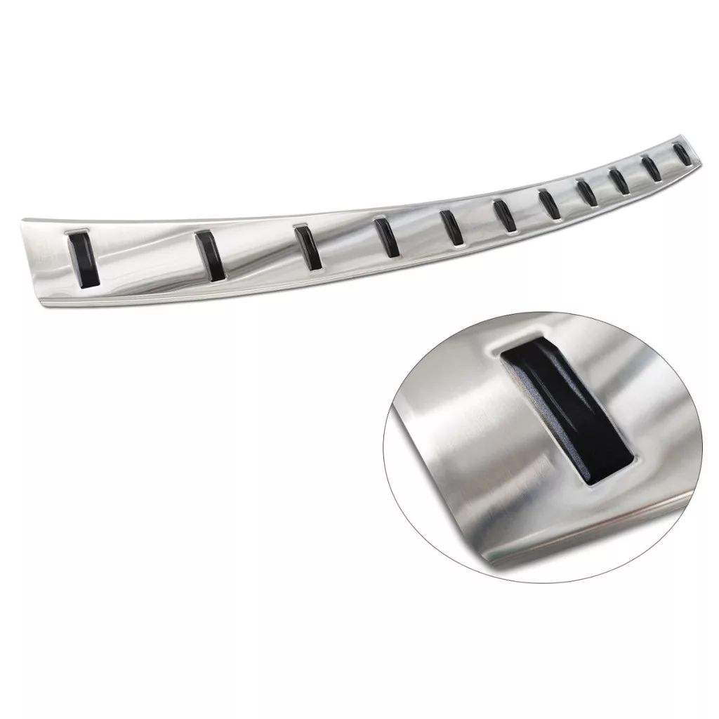 Erősített Hátsó lökhárítóra készült védőcsík rozsdamentes acélból. Megbízhatóan védi a lökhárítót karcolásoktól a rakodás és kipakolás során a csomagtérből.