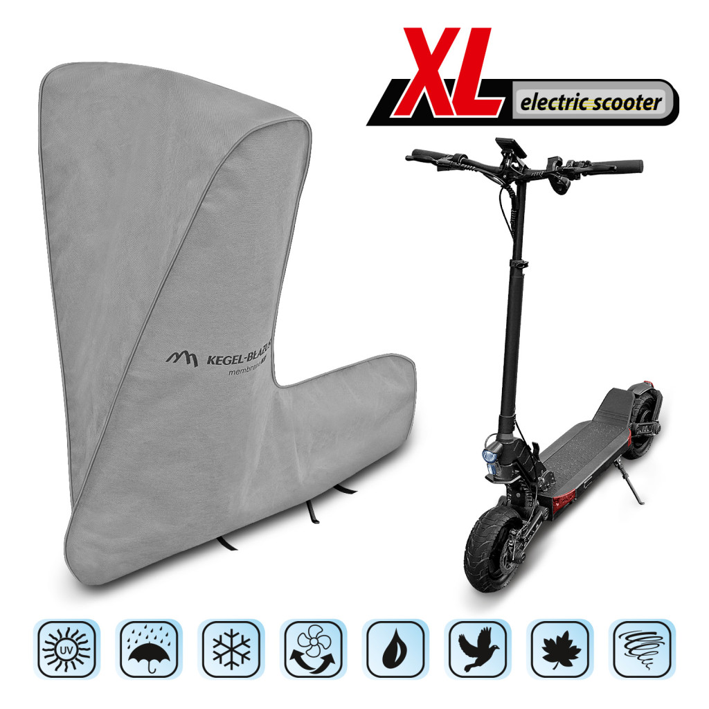 Az XL méretű elektromos robogó huzat, amely vízálló és páraáteresztő membránból készült, megvédi robogóját a káros környezeti hatásoktól. Az erős, 4 rétegű burkolat védi a járművet az esőtől, széllel, levelektől, UV-sugárzástól és madárürüléktől. A huzat könnyen fel- és levehető, elasztikus szalaggal rögzíthető, és szélbiztos kiegészítő rögzítőkkel van ellátva.