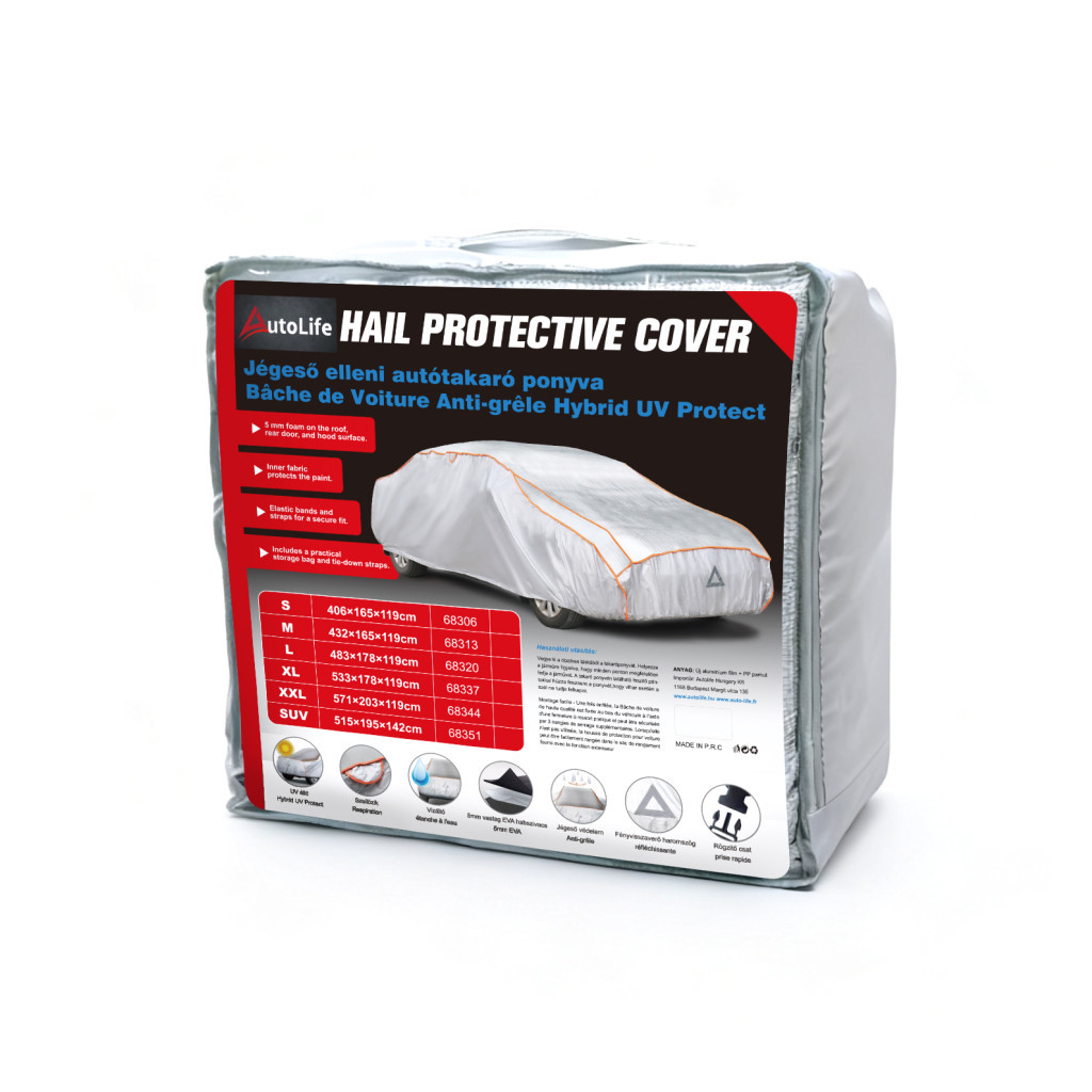 Megbízható, egész évben használható védelem az autó számára – ez a prémium minőségű jégeső elleni ponyva ideális választás azok számára, akik komolyan veszik járművük védelmét. A ponyva felső részébe 5 mm vastag EVA habszivacs réteg került beépítésre, amely hatékonyan csillapítja a jégeső ütődéseit, és csökkenti a karosszériára mért káros hatásokat.