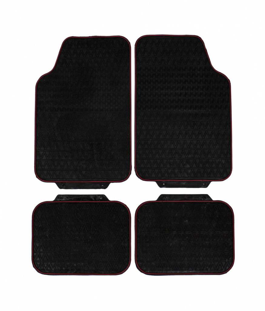 4 részes, autós gumiszőnyeg garnitúra - fekete színű, piros szegélyes szett