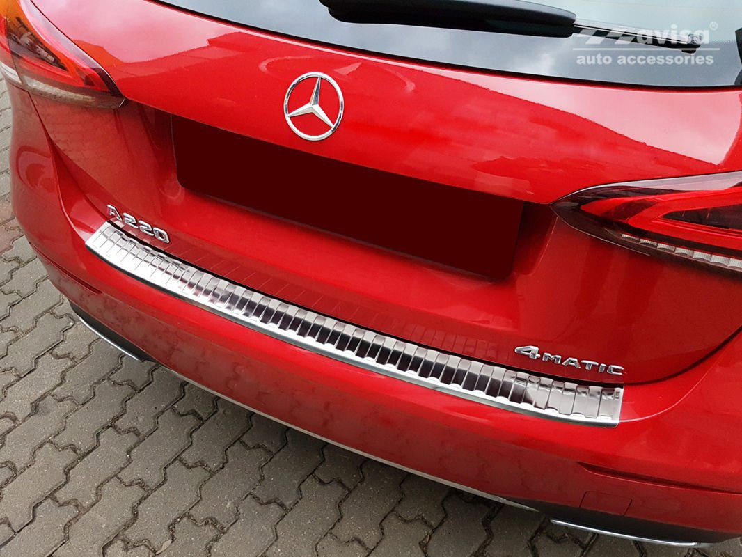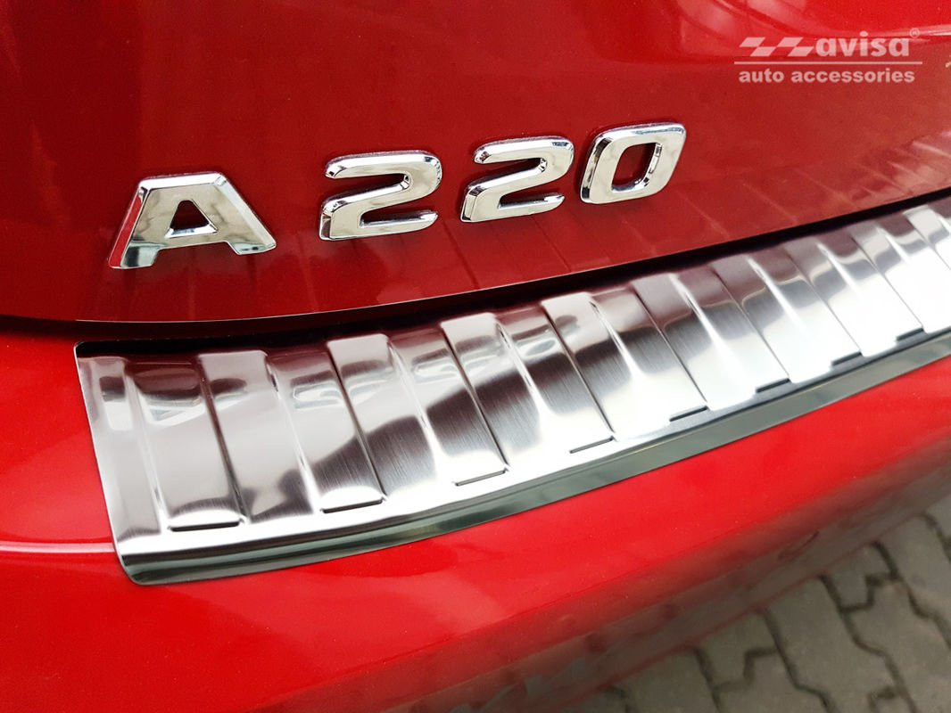 Hátsó lökhárítóra készült védőcsík Mercedes A-Class-hozrozsdamentes acélból.