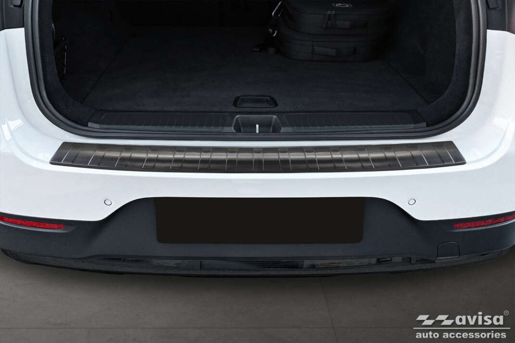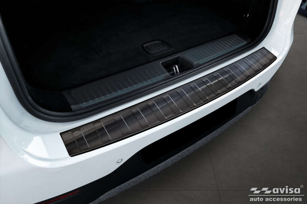 Hátsó lökhárítóra készült védőcsík Mercedes EQE-hozsötét rozsdamentes acélból.