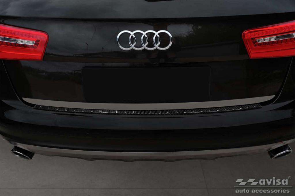 Hátsó lökhárítóra készült védőcsík Audi A6-hoz karbonból.