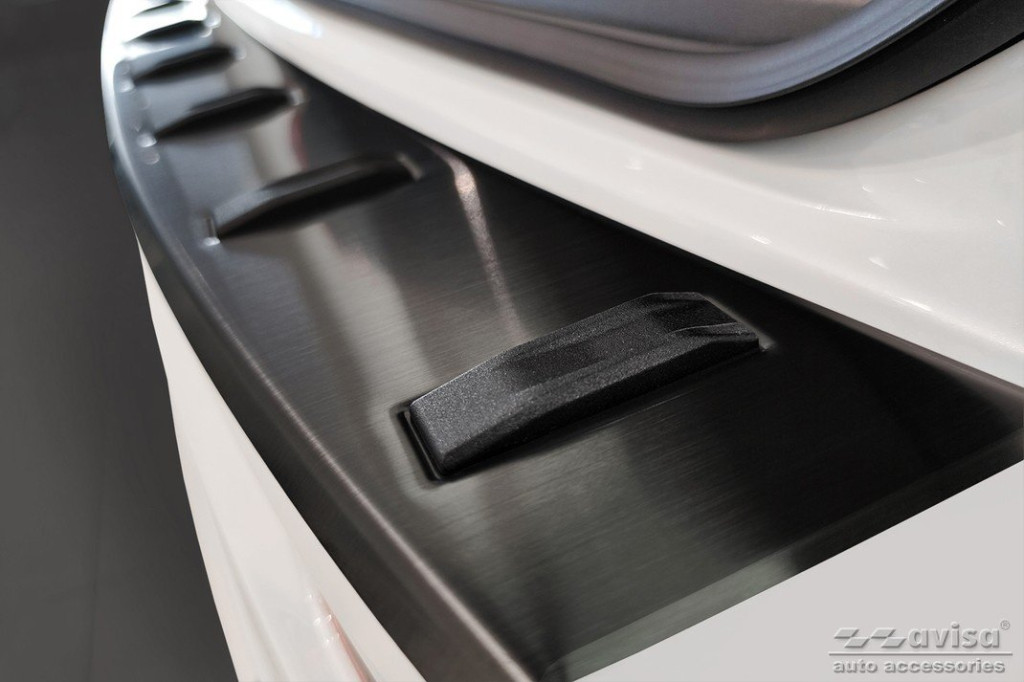 Az autó hátsó lökhárítójának megerősített védőcsíkja rozsdamentes acélból készült . Megbízhatóan védi a lökhárítót a kopástól a csomagtartóba való be- és  kipakolás során .