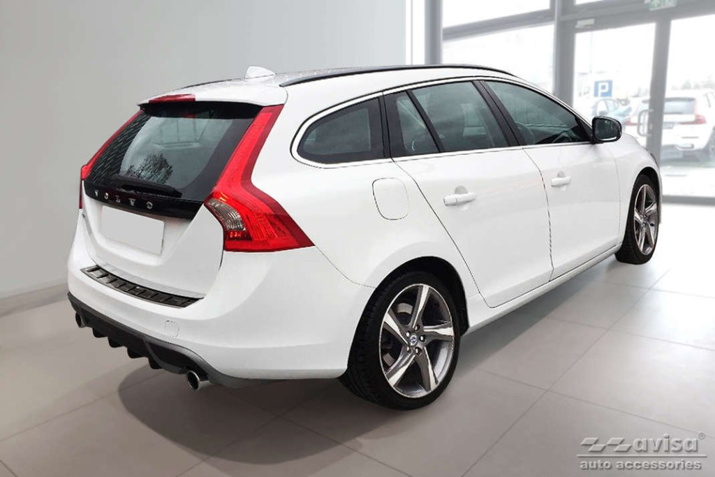 Volvo|V60|2010-2018|A 0,8 mm vastag, megerősített rozsdamentes acélból készült díszléc műanyag bordázattal. Megvédi a lökhárítót és a csomagtér peremét a karcolásoktól. Ezek a csomagtartó védőcsíkok pontosan passzolnak a Volvo V60 2010-2018 formájához.