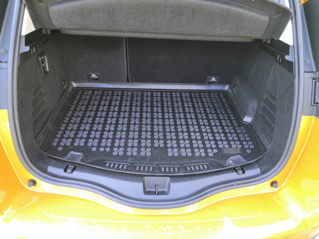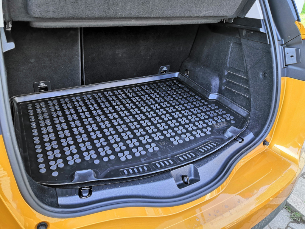 A csomagtértálca felülete érdes, csúszásmentes textúrájú, ami bizonyos mértékig megakadályozza, hogy a rakomány spontán elmozduljon a kanyarokban.