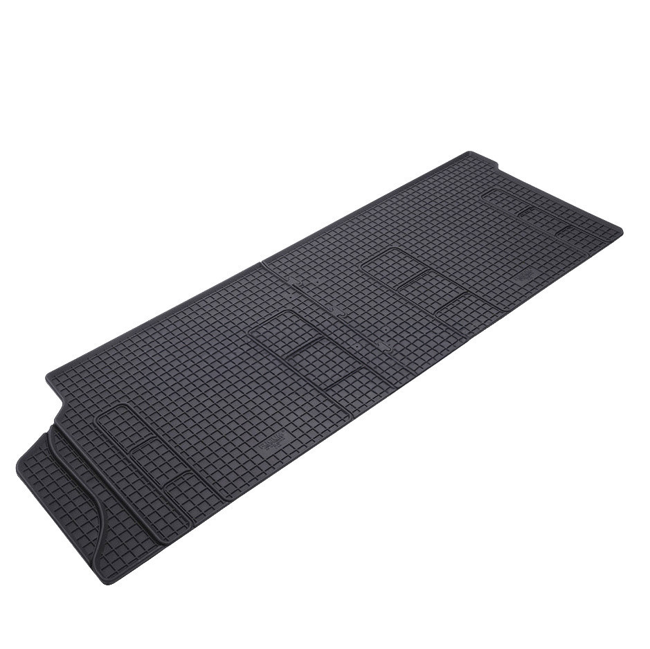 méretpontos gumiszőnyeg a VW Transporter T6 számára. Ez a készlet az egész autóra vonatkozik. A szőnyegek hagyományos (szögletes) kialakításúak, ami megakadályozza, hogy a víz vagy az olvadó hó átfolyjon a szőnyegeken. Az autószőnyegek széle körülbelül 1 cm magas.