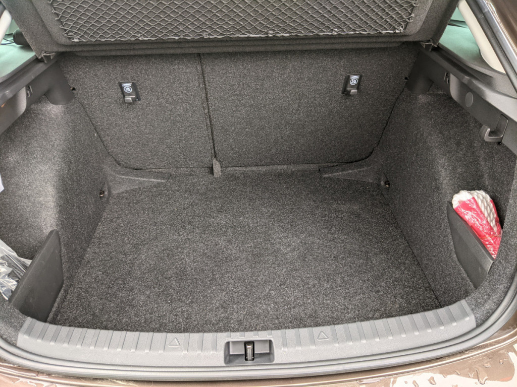 A csomagtértálca felülete durva, csúszásmentes textúrával rendelkezik, ami bizonyos mértékig megakadályozza, hogy a szállított rakomány spontán elmozduljon a kanyarokban.