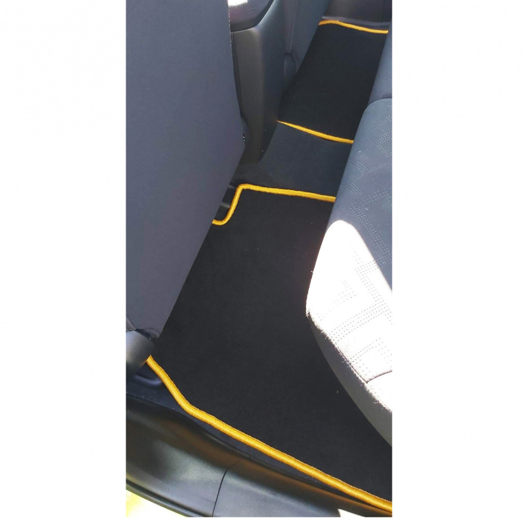 A szőnyegek peremét különleges chemlon szövéses varrással láttuk el, akár 20 választható színnel, így minden belső tér harmonikus és egyedi megjelenést kaphat. A vezető lába alatti, megerősített rész is azonos varrással készül, ezzel biztosítva az esztétikus összhangot.