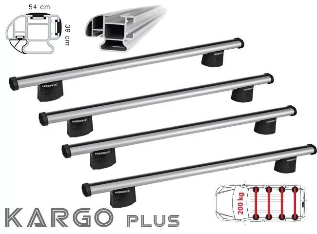 Minőségi alumínium tetőcsomagtartó Nordrive Kargo - Plus különleges funkcionális kialakítás, a rúd három T-horonnyal van ellátva a tartozékok variálható rögzítéséhez, valamint gumiprofillal az aerodinamika optimalizálása érdekében. Adott típusú járműhöz tervezett, nagy terhelésű talpszettek (2 - rudas = 100kg / 3 - rudas = 150kg / 4 rudas = 200kg) A tetőcsomagtartó egy talpszettből áll, amelyet egy adott autóhoz terveztek és mindig az autógyártó által meghatározott pontokra rögzítik. A csomagtartó terhelése rudanként 50kg. Ha 2 rúddal rendelkezik a tetőcsomagtartó teherbírása 100 kg / 3 rúd 150 kg / 4 rúd 200 kg. A felső sín egy csúszásgátló profilt tartalmaz, amely hozzáér a szállított rakományhoz és rakományrögzítők, csavarok, rögzítőszemek és egyéb tartozékok beillesztésére is használható. A hátsó sín a görgő a rakományrögzítő és a rögzítőszemek beillesztésére szolgál. Az elülső sín az állítható Aero kargo légterelő behelyezésére szolgál. Kifejezetten haszonjárművekhez tervezett tetőcsomagtartók Tökéletes segítség vállalkozása számára, nagy terhelhetőséggel és nagyon praktikus felhasználással. TARTOZÉKOK KARGO PLUS tetőcsomagtartókhoz