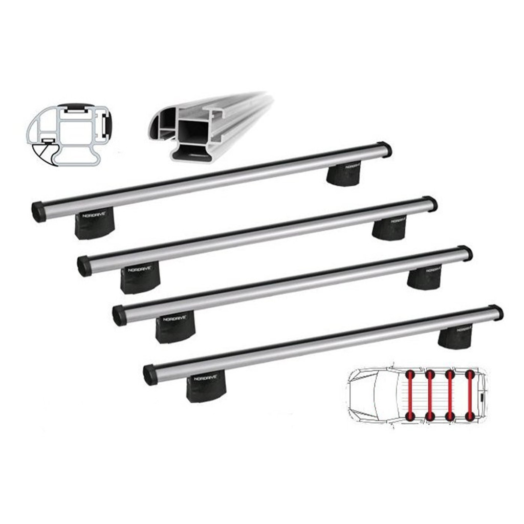 Minőségi alumínium tetőcsomagtartó Nordrive Kargo - Plus különleges funkcionális kialakítás, a rúd három T-horonnyal van ellátva a tartozékok variálható rögzítéséhez, valamint gumiprofillal az aerodinamika optimalizálása érdekében. Adott típusú járműhöz tervezett, nagy terhelésű talpszettek (2 - rudas = 100kg / 3 - rudas = 150kg / 4 rudas = 200kg) A tetőcsomagtartó egy talpszettből áll, amelyet egy adott autóhoz terveztek és mindig az autógyártó által meghatározott pontokra rögzítik. A csomagtartó terhelése rudanként 50kg. Ha 2 rúddal rendelkezik a tetőcsomagtartó teherbírása 100 kg / 3 rúd 150 kg / 4 rúd 200 kg. A felső sín egy csúszásgátló profilt tartalmaz, amely hozzáér a szállított rakományhoz és rakományrögzítők, csavarok, rögzítőszemek és egyéb tartozékok beillesztésére is használható. A hátsó sín a görgő a rakományrögzítő és a rögzítőszemek beillesztésére szolgál. Az elülső sín az állítható Aero kargo légterelő behelyezésére szolgál. Kifejezetten haszonjárművekhez tervezett tetőcsomagtartók Tökéletes segítség vállalkozása számára, nagy terhelhetőséggel és nagyon praktikus felhasználással. TARTOZÉKOK KARGO PLUS tetőcsomagtartókhoz