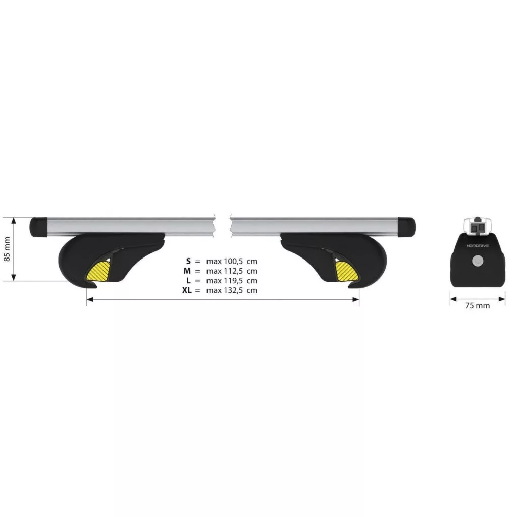 Kiváló minőségű alumínium tetőcsomagtartó YUROkifijezetten szabványos tetősínnel felszerelt járművekhez készült, 90 kg-os teherbírással.A Nordrive Yuro talpszettjei magasszilárdságú műanyagból készültek, amelyek üvegszállal és acélbetéttel vannak megerősítve. A standard 4 darabos zárkészlettel a csomagtartó optimálisan védett a lopás ellen.      A rudak szabványos T-horonnyal vannak felszerelve, hogy a T-csavarokkal kényelmesen rögzíthessen más tartozékokat isA T - horony stélessége 21 mm, minden szabványos tartozékkal kompatibilis, beleértve a THULE -t is.  A kompakt méretek változatos és univerzális használatot biztosítanak többféle típusú autóknál, különböző szélességű tetősínekkel       A tetőcsomagtartó 130km/h sebességre engedélyezett és összeszerelve, használatra készen szállítjuk.